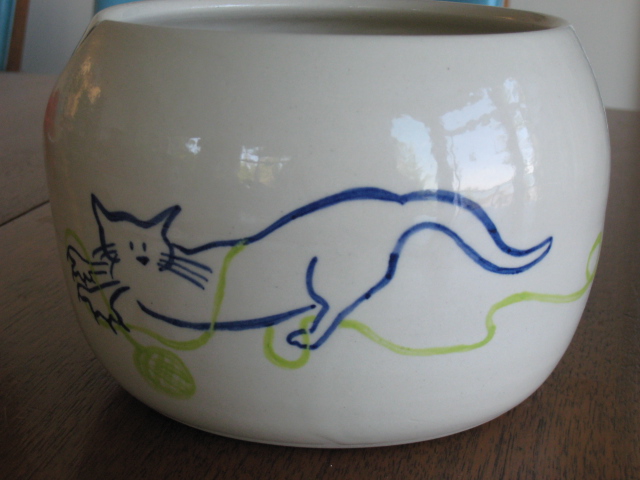 Our newest product, a yarn bowl for knitting and crocheting, is shown below. This is available by special order only.